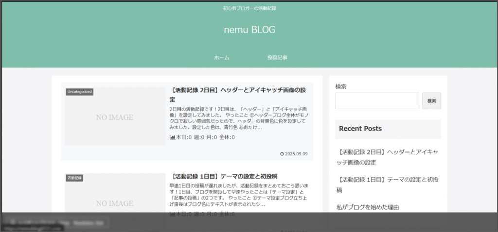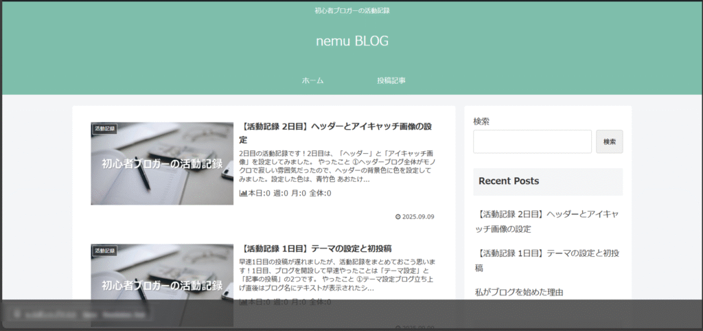 2日目は、「ヘッダー」と「アイキャッチ画像」を設定してみました。