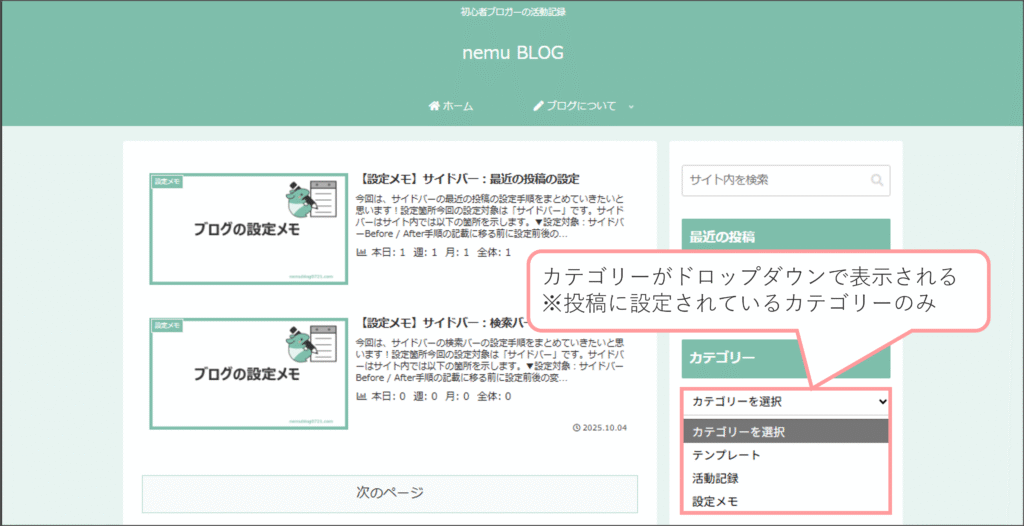 カテゴリー:ドロップダウンで表示