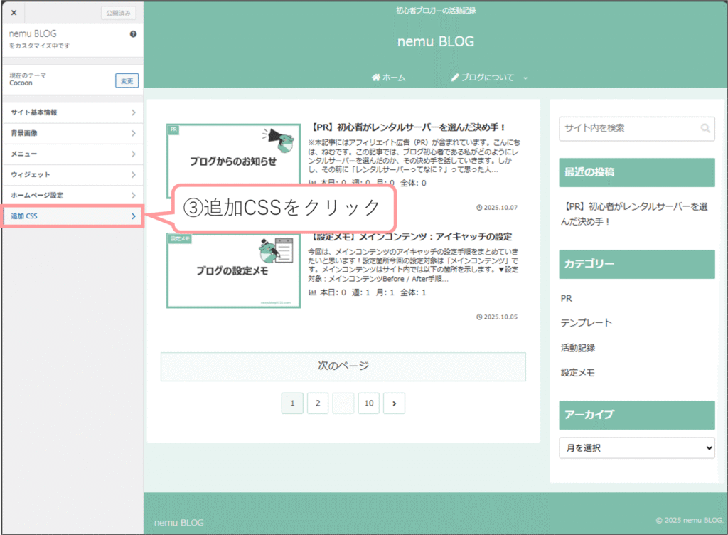 追加CSSは設定内容ごとに分けて作成できないため、追記する際は注意して行った方がよさそうです。今回の設定では、コメントや改行などで設定項目の区切りが分かるように記載してみましたが、今後、追記していく中でより良い書き方が無いか考えていきたいですね。